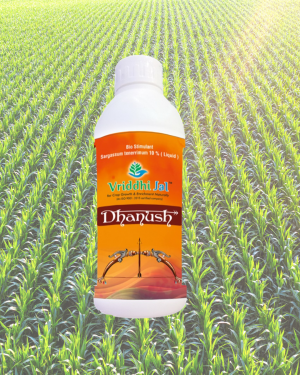 Vriddhi Jal Dhanush is a premium liquid bio-stimulant made from Sargassum Tenerimum seaweed extract (10%). It enhances plant growth, improves flowering and fruit setting, and boosts crop yield naturally.